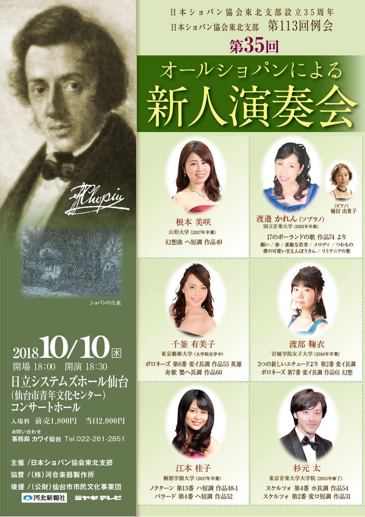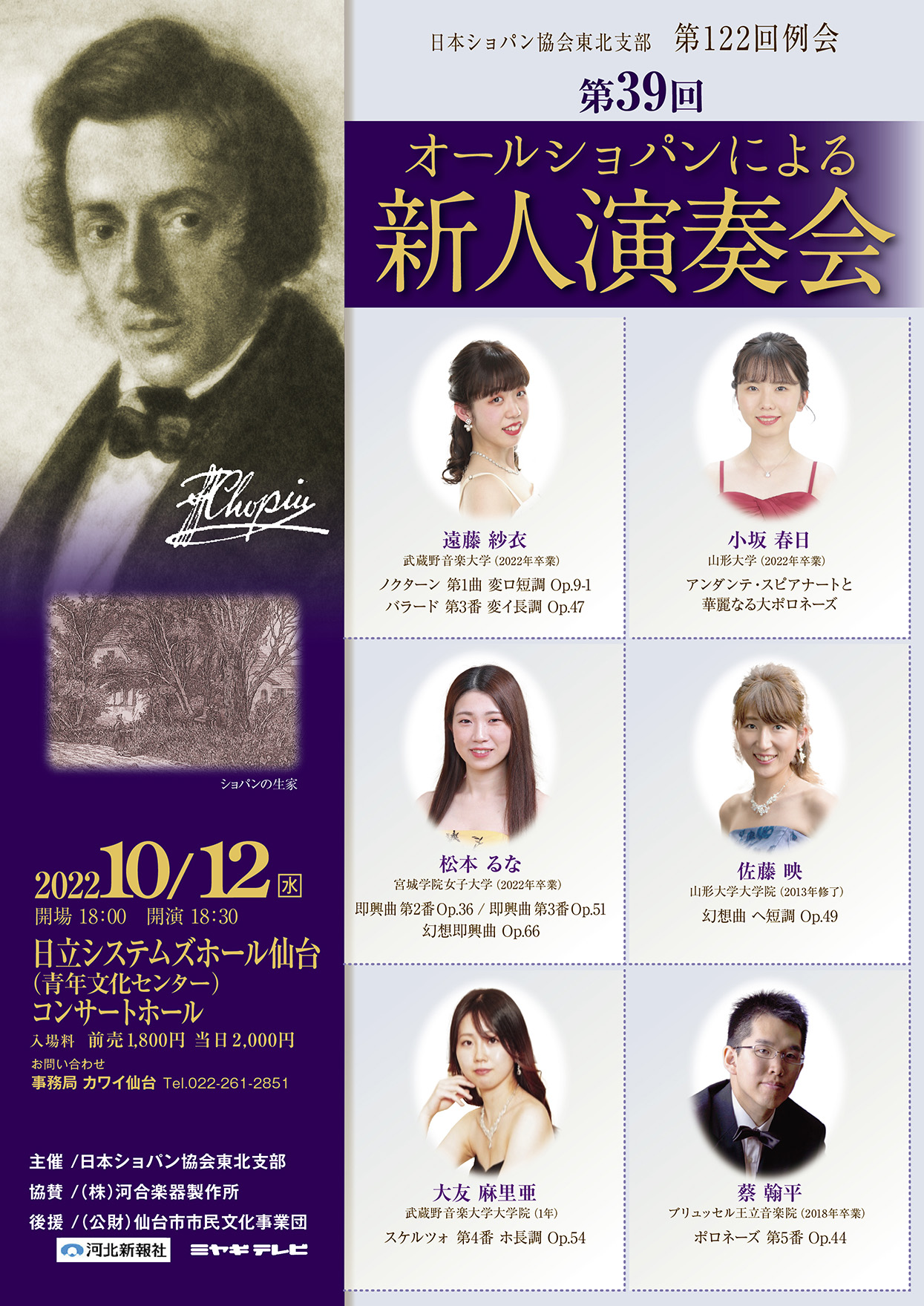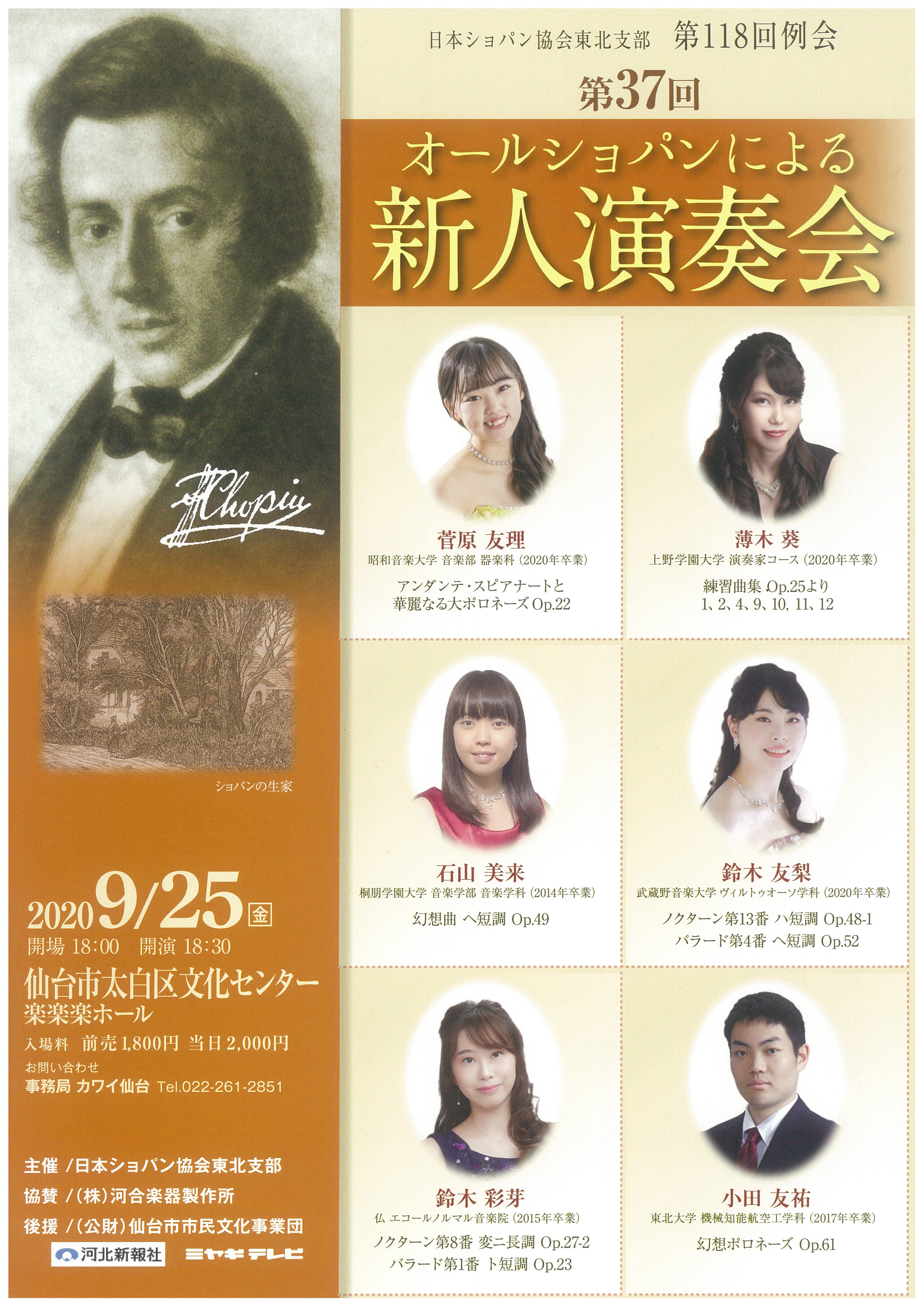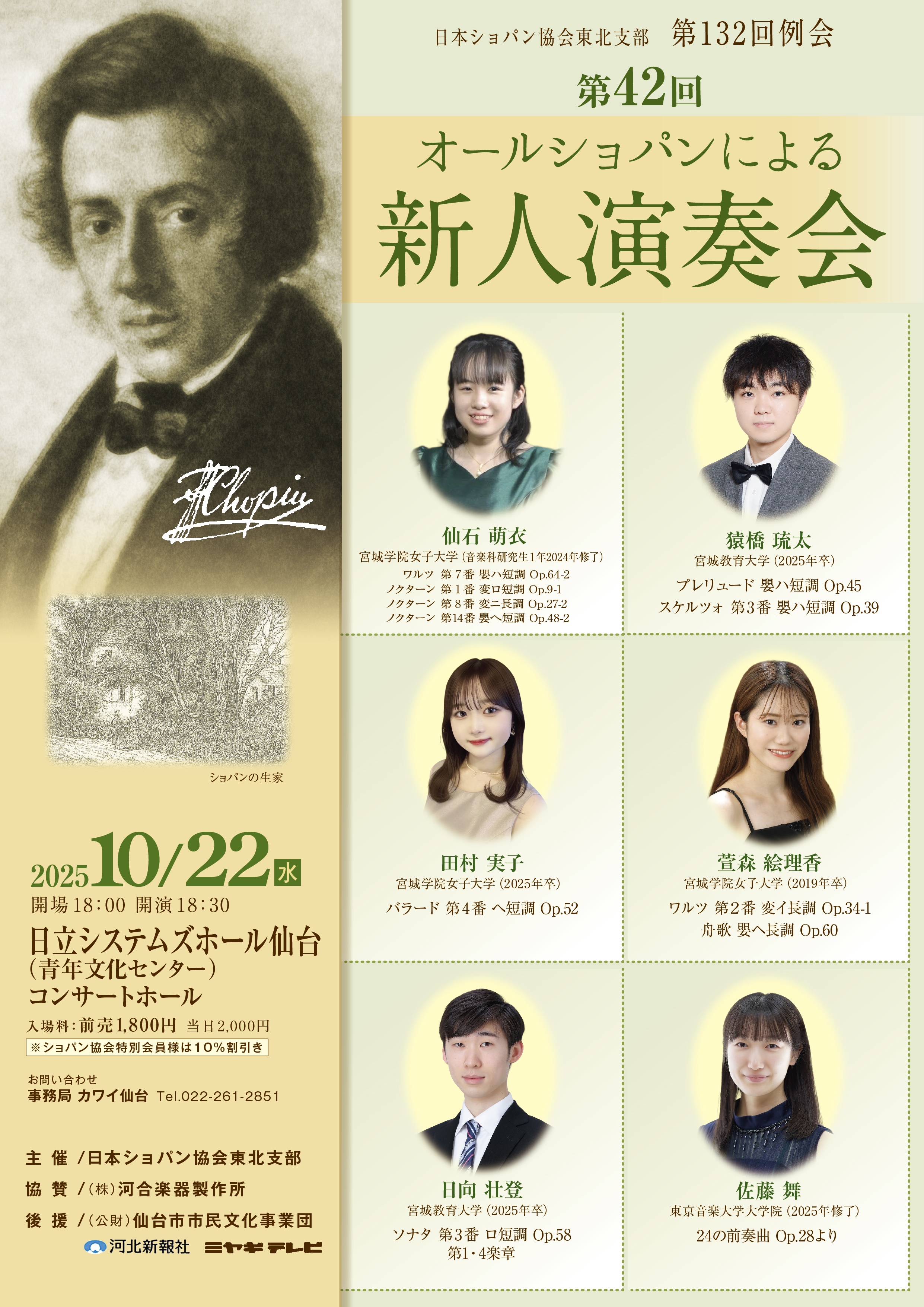 [日本ショパン協会東北支部第132回例会 第42回オールショパンによる新人演奏会]